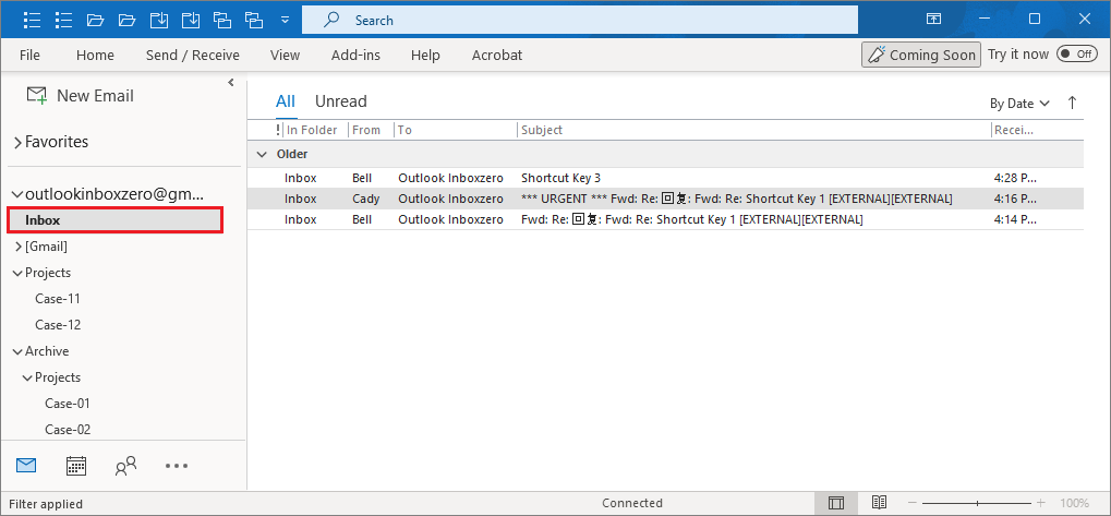 Organize your email with folders in Outlook, please keep your Inbox clean and move emails to the appropriate folder after you check, that is called the "Inbox Zero" strategy. By creating folders, you can streamline your inbox and stay organized. Automatically sorting emails into specific folders makes it easier to stay on task and focus on your priorities, knowing that all of your messages from a specific person or on a designated topic will be waiting for you in a dedicated folder. You’ll know right where to look when you need them, and you can decide when to read them.