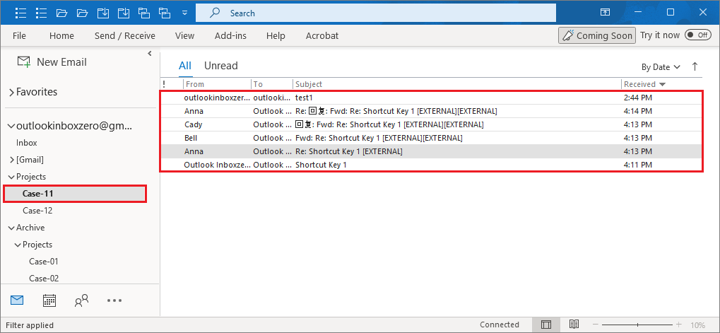 5. The email has been moved into the folder "Case-11" you specified.