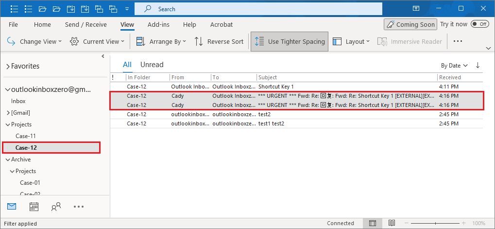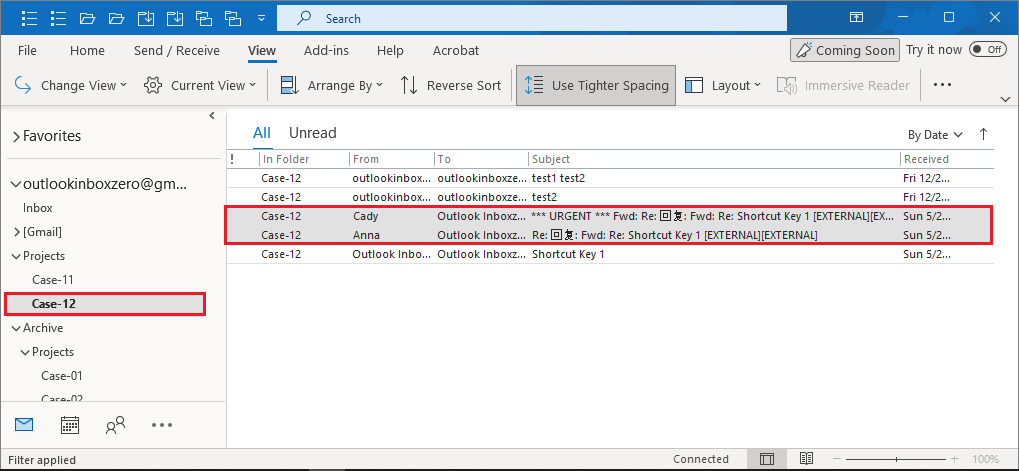 3. The multiple emails have been copied to a folder("Case-12") you specified.